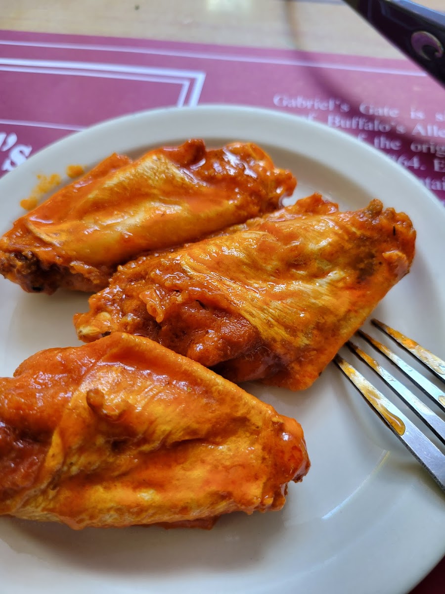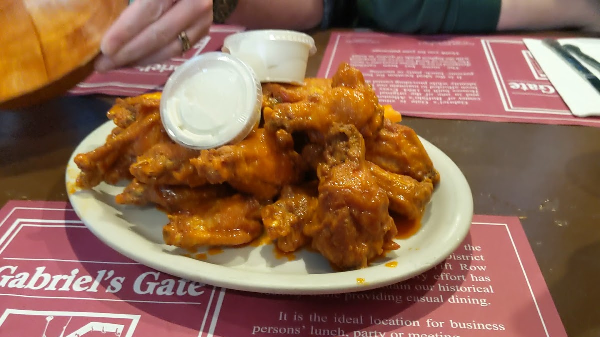 So wifey and I are on a typical road tripping vacation. The hotel staff found out I wanted wings of course. They recommended Gabriel's gate as a local favorite as opposed to the hyped up one. The wings were good. We got mild spice. Their blue cheese burger was a bit dry considering I ordered it cook medium. Wifey had a cheese steak sandwich and it was very good. Especially the next day with a light nuke in the microwave. The server was fabulously helpful and friendly. Place was super busy and everyone really seemed to be enjoying the vibe of the place. It's a shame that we live a few thousand miles away because we would definitely be back.